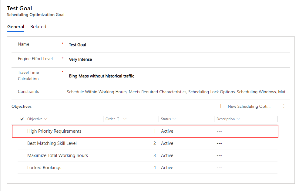 In the Goal->Objective add ‘High Priority Requirements’. This will evaluated by RSO and it gives priority to the resource/booking combination with the highest score. Pre-requisite for this is having the priority level set at the resource requirement.