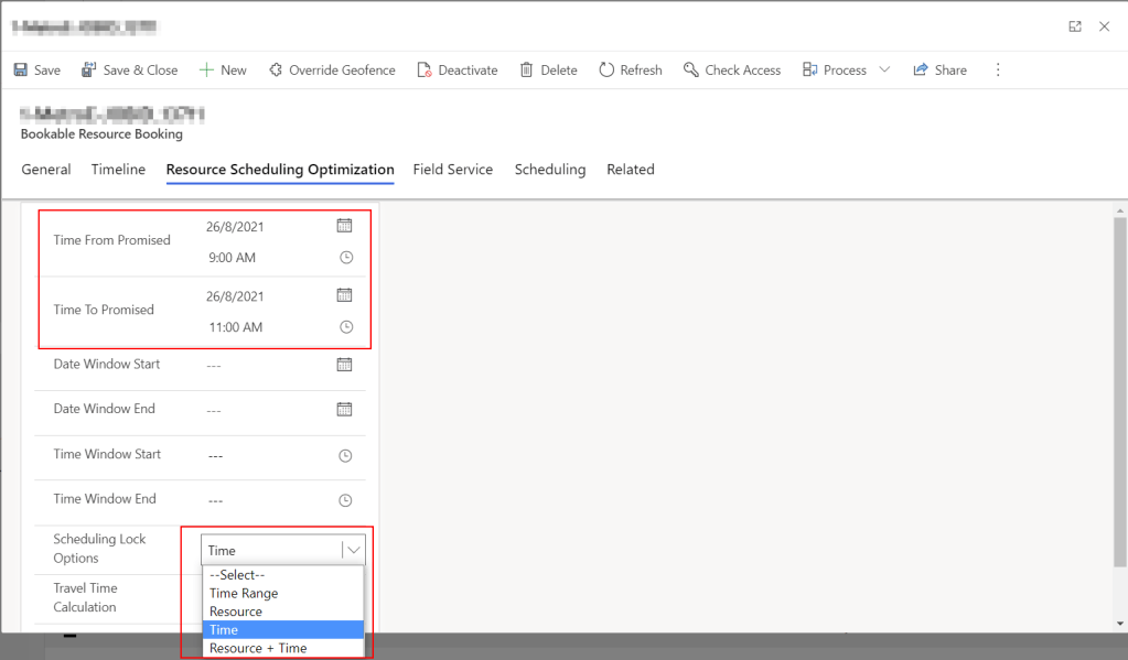 - Once booking created, have an automation like a flow, workflow to update the promised date time and/or resource of the booking and scheduling lock options set as given below.