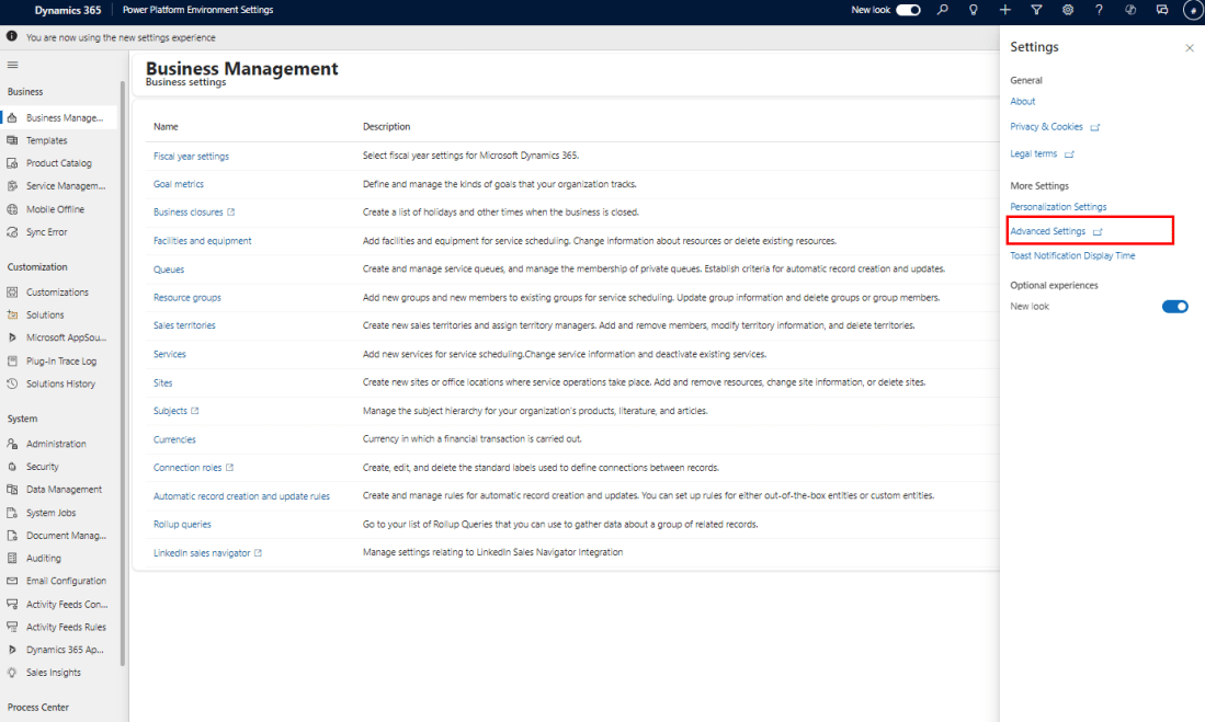 Today when I tried to open advanced settings as usual, realized that the old 'Settings' menu has got a total revamp and replaced by an app named, 'Power Platform Environment Settings'. Power Platform Environment Settings app replaces the legacy, web client experience by providing a single, unified experience for application developers to create settings for their … Continue reading Advanced Settings gets a fresh look!