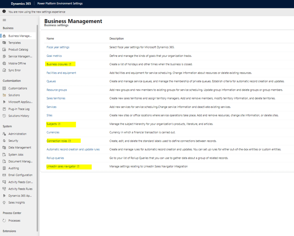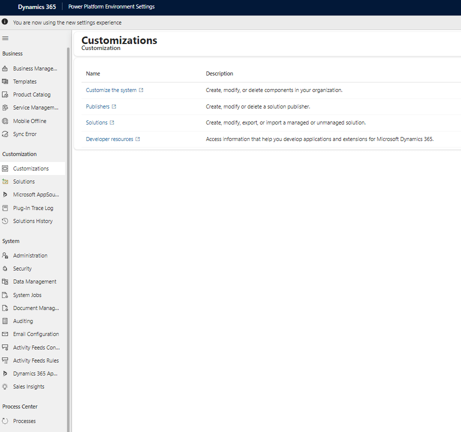 Note: Any existing extensions that have been created by customers to extend the settings site map will be preserved and any solution imports that include extensions to settings will be honoured and routed to the Power Platform Environment Settings app.