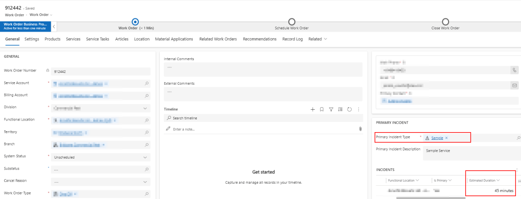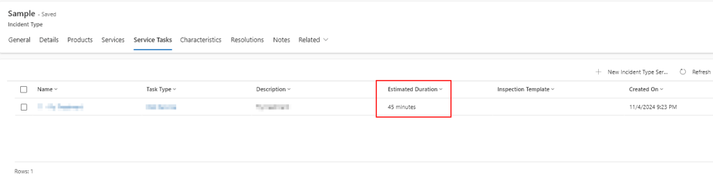 For Work Orders with Incident Type and/or Service Tasks, the Estimated Duration is derived from the associated Incident Type