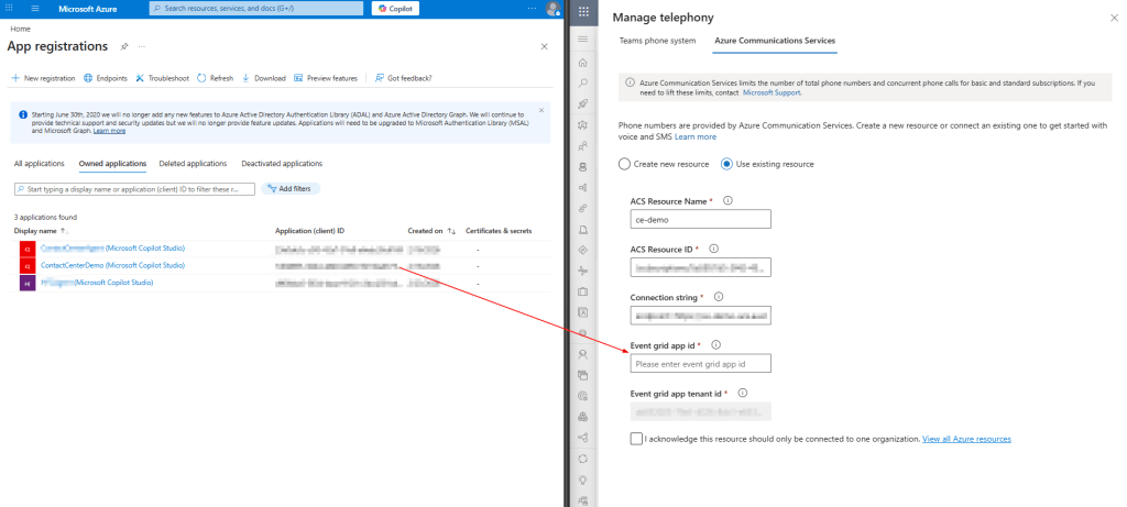 Here are the steps to get it:https://learn.microsoft.com/en-us/dynamics365/customer-service/administer/voice-channel-connect-existing-resource#get-event-grid-application-and-tenant-ids-from-the-azure-portal